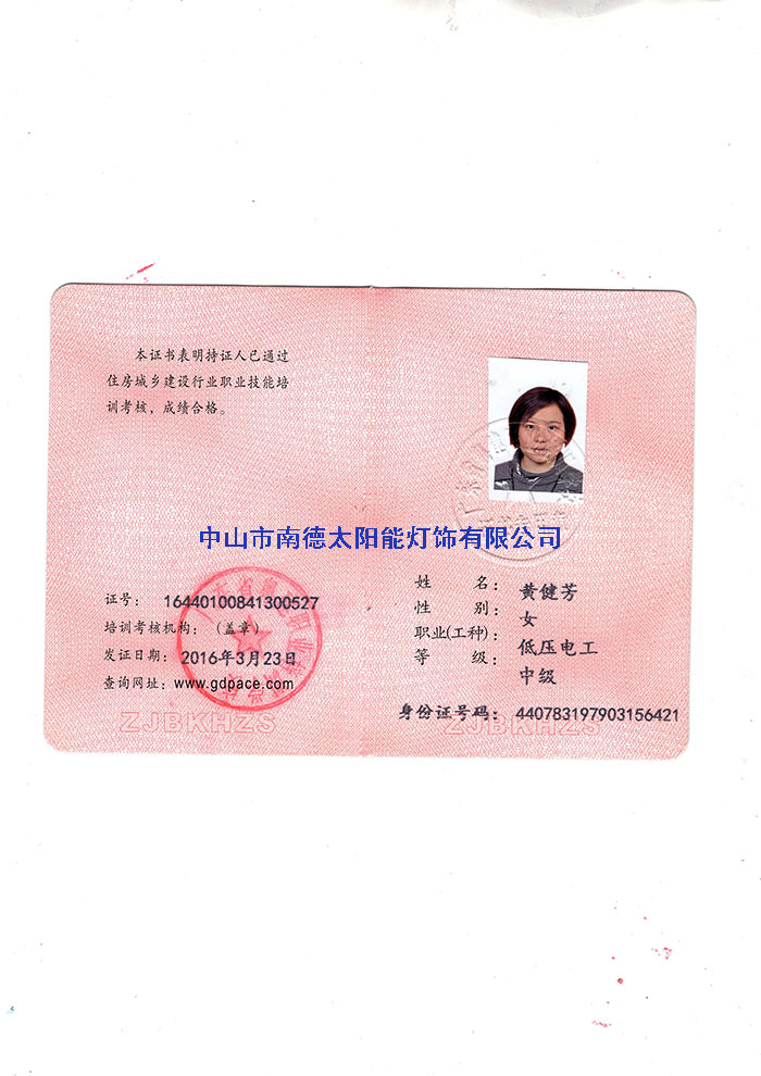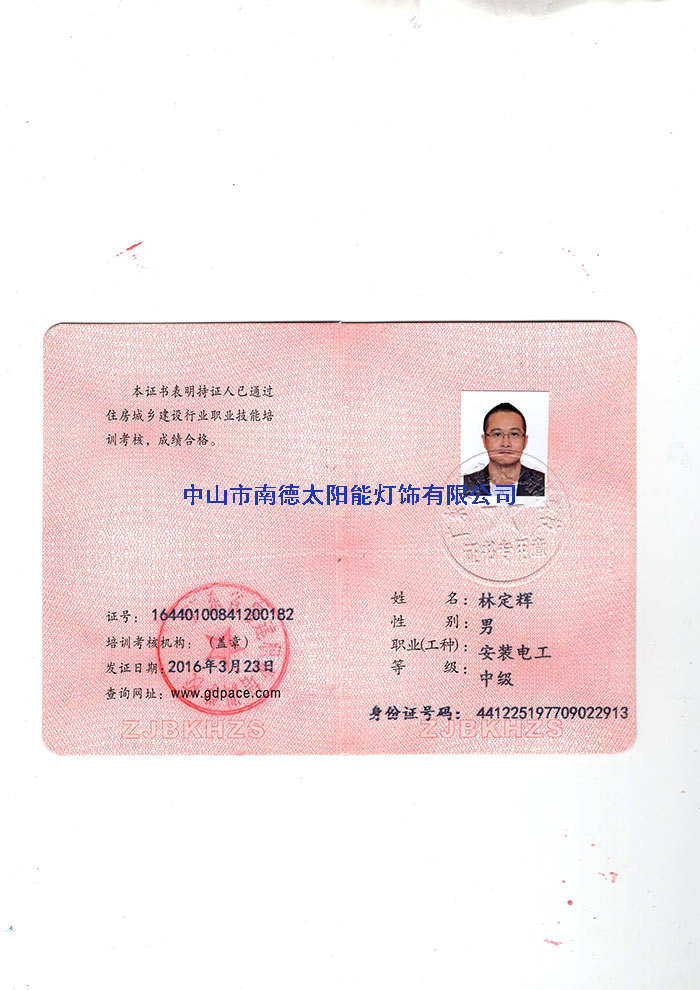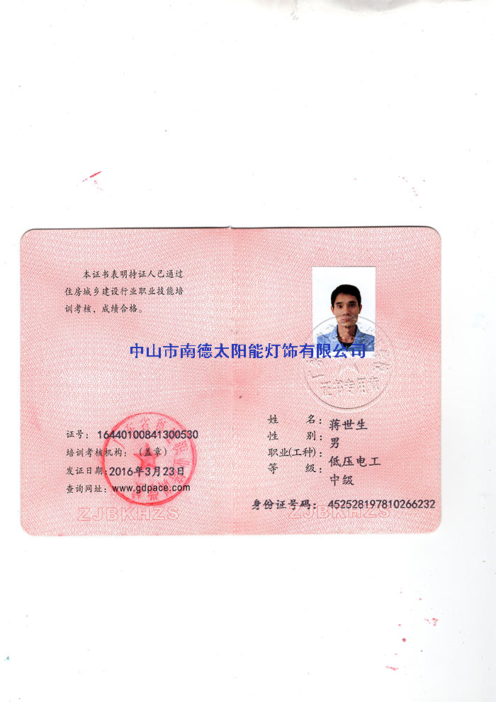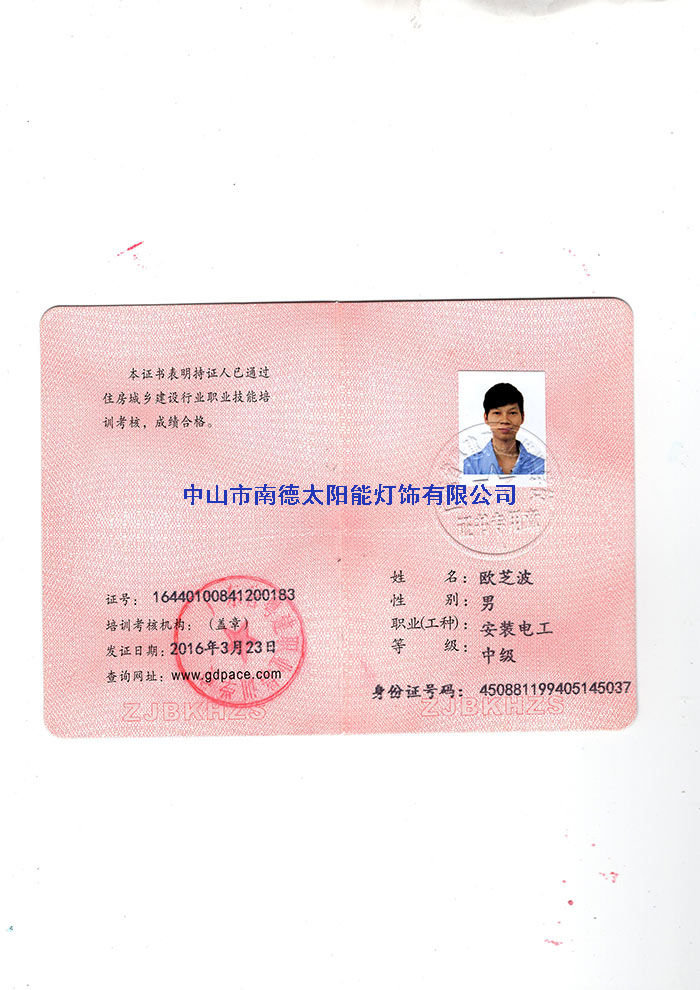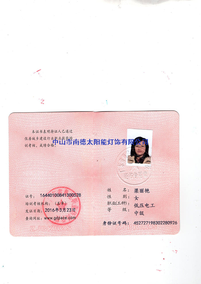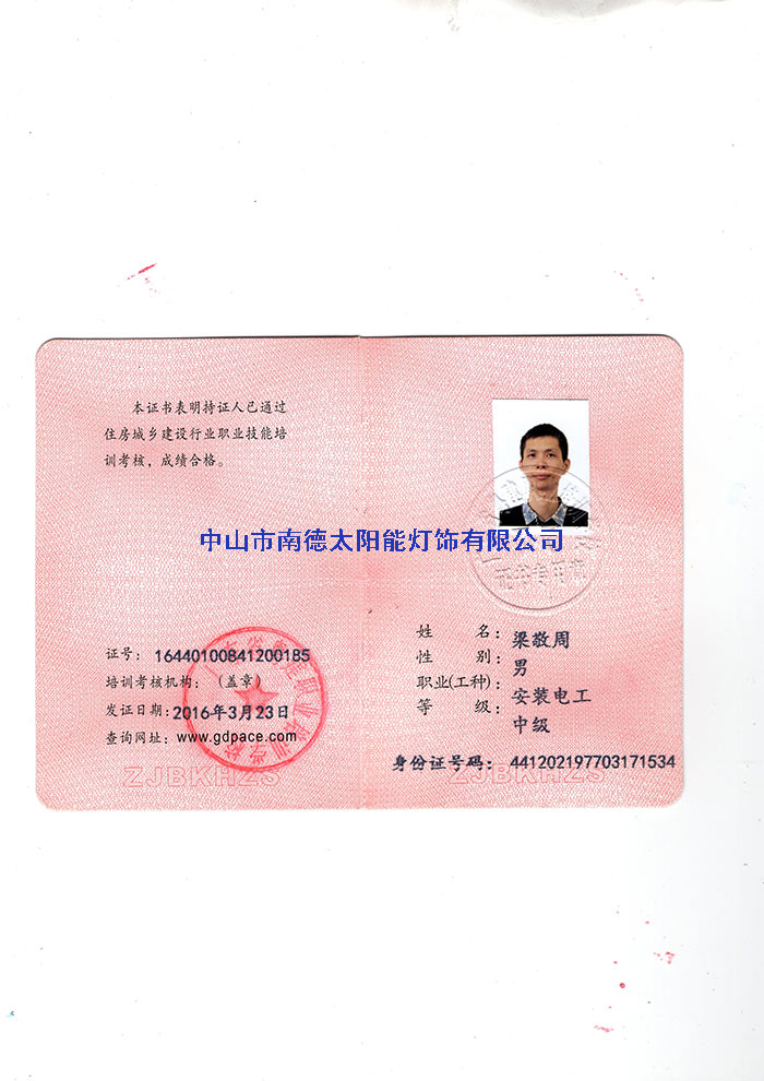 人员证书—中山市南德太阳能路灯厂家-第2页