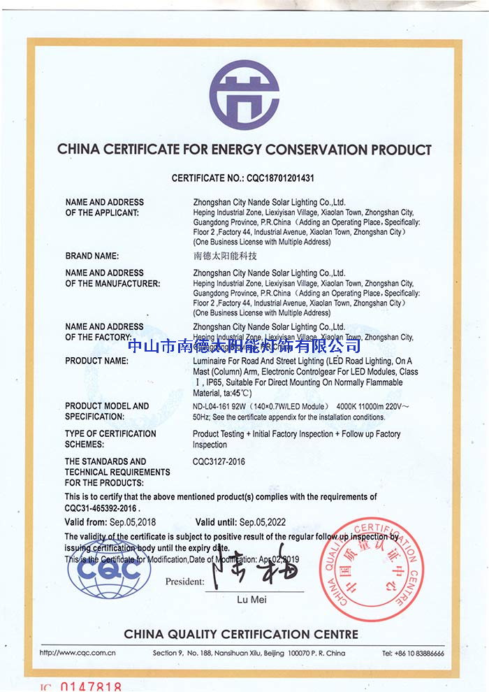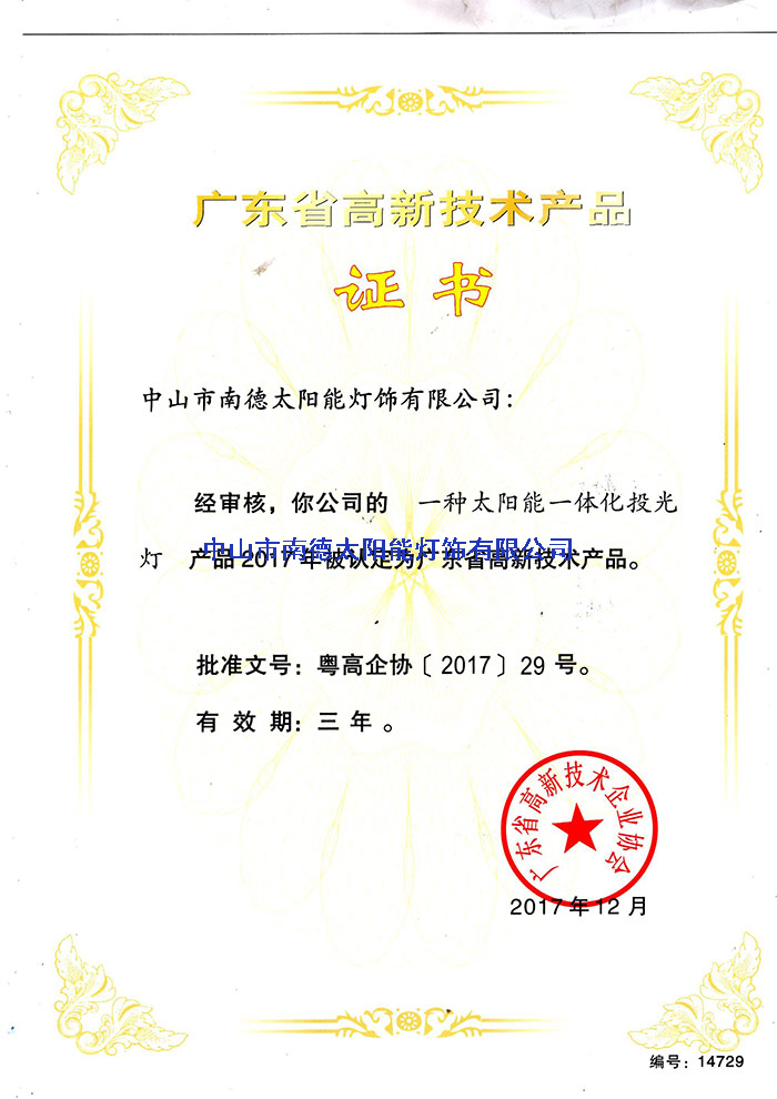 荣誉资质—中山市南德太阳能路灯厂家-第4页