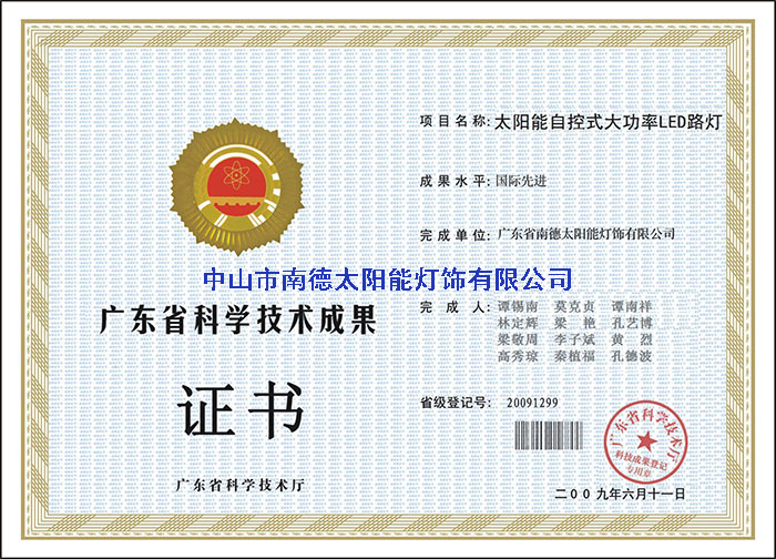 荣誉资质—中山市南德太阳能路灯厂家-第7页